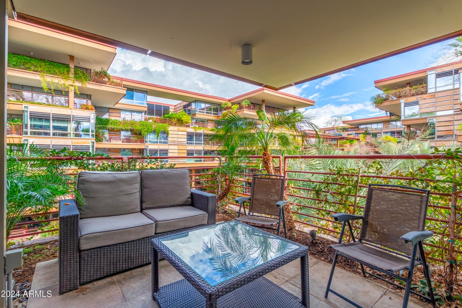 Optima at Camleview Village is an incredible, unique condo development located next to Scottsdale Fashion Square and right in the heart of all the restaurants, shopping, and outdoor activities you could want. This rare east facing unit with 2 private balconies overlooks the breathtaking promenade. The floor-to-ceiling glass windows showcase the gorgeous balcony and lush Optima landscape. Exceptional 2B/2B, 4th floor corner unit with electronic shades, bamboo flooring, granite counters, SS appliances, smart home features, and plenty of views. All found within the luxurious Optima Camelview Village with it's unbeatable location and state of the art design/amenities. Onsite Concierge, restaurant, putting green, basketball/racquetball, two outdoor zen pools/spa and indoor lap pool. 24k sqft fitness center.