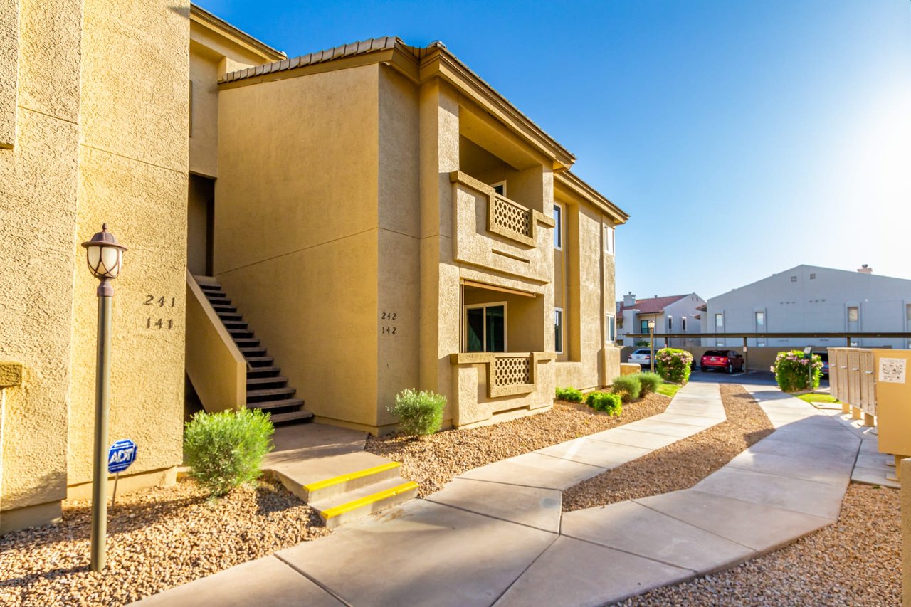 Discover effortless desert living in this exceptionally located private hideaway retreat. Perched on the second story, this corner unit is nestled within the gated community of The Preserve Condominium Homes and boasts dual balconies with stunning sunset views and candid outcroppings of Piestewa Peak Mountain.